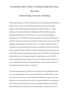 Knapp, A. (2014) En attendant Sarko? France’s mainstream Right and Centre, 2012-2014. Modern and Contemporary France, 22 (4). pp. 473-489. ISSN 0963-9489 doi: 10.1080/09639489.2014.957963