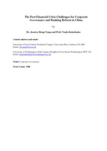 The post-financial crisis challenges for corporate governance and banking reform in China.