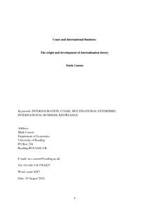 Coase and international business: the origin and development of internalisation theory
