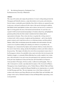 This essay will examine and compare the production of women's writing during and after the Nicaraguan and Cuban Revolutions, a corpus that includes novels, poetry, and testimonies, but also features considerable generic hybridity. Since both revolutions are separated by some twenty years, each must be understood in the context of the specific ideological conditions that framed women’s participation in culture and revolution, and must also be considered in light of evolving gender discourses, both national and international. As such, these texts respond to both local and transnational paradigms of feminine subjectivity, and highlight the particular problems that arise from women’s insertion into the revolution and its representation in literature. These writers also have to negotiate the evolving context of revolution itself, with its moments of euphoria and disenchantment – and it is here that the greatest contrasts can be found between the two revolutionary instances and their political features: whilst Cuba’s revolutionary process has somehow survived economic crisis and created a level of political stability and continuity (not without its own problems), the Nicaraguan case is characterised by ruptures and resentments which are clearly reflected in the work of writers before, during, and after the Sandinista revolution, and which continue to the present day. This chapter will address the work of the most prominent woman writer of the Nicaraguan revolution, Gioconda Belli, whose main work reflects her involvement in the Sandinista struggle; ex-commander Mónica Baltodano has recently compiled a four volume piece with testimonials of men and women who participated in the organization and actions led by the Frente Sandinista de Liberación Nacional, and Violeta Barrios de Chamorro, former president of Nicaragua, who has recently co-authored an autobiography. There are other women poets to consider, especially under the auspices of the Asociación de Mujeres Nicaraguenses Luisa Amanda Espinoza, such as Vidaluz Meneses, Michele Najlis and Daisy Zamora. The testimonios compiled by Margaret Randall are also important pieces to consider for both Nicaragua and Cuba. The most important voices of the Cuban revolution still resident on the island are poet Nancy Morejón and writers Mirta Yáñez and Aida Bahr, with younger writers such as Adelaida Fernández de Juan and Marilyn Bobes representing a more recent generation.