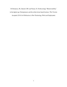 Di Domenico, M., Daniel, E. and Nunan, D. (2014) 'Mental mobility’ in the digital age: entrepreneurs and the online home-based business. New Technology, Work and Employment, 29 (3). pp. 266-281. ISSN 1468-005X doi: 10.1111/ntwe.12034