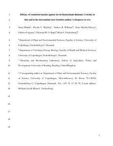 Dhakal, S., Meyling, N. V., Williams, A. R., Mueller-Harvey, I., Fryganas, C., Kapel, C. M.O. and Fredensborg, B. L. (2015) Efficacy of condensed tannins against larval Hymenolepis diminuta (Cestoda) in vitro and in the intermediate host Tenebrio molitor (Coleoptera) in vivo. Veterinary Parasitology, 207 (1-2). pp. 49-55. ISSN 03044017 doi: 10.1016/j.vetpar.2014.11.006