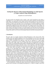 Getting the measure of derivational morphology in adult speech a corpus analysis using MorphoQuantics.
