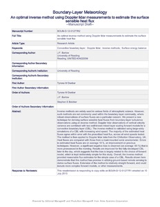 Dunbar, T. M., Barlow, J. F. and Belcher, S. E. (2013) An optimal inverse method using Doppler lidar measurements to estimate the surface sensible heat flux. Boundary-Layer Meteorology, 150 (1). pp. 49-67. ISSN 0006-8314 doi: 10.1007/s10546-013-9858-2