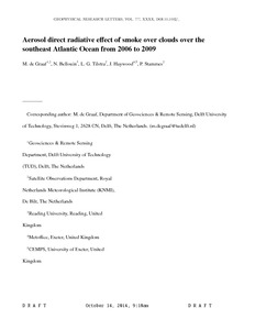Aerosol direct radiative effect of smoke over clouds over the southeast Atlantic Ocean from 2006 to 2009.