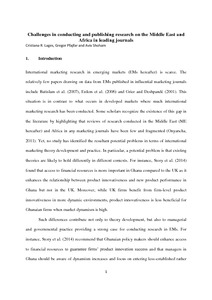Lages, C., Pfajfar, G. and Shoham, A. (2015) Challenges in conducting and publishing research on the Middle East and Africa in leading journals. International Marketing Review, 32 (1). pp. 52-77. ISSN 0265-1335 doi: 10.1108/IMR-12-2014-0374