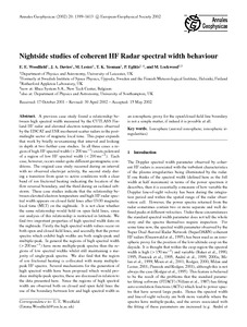 Nightside studies of coherent HF Radar spectral width behaviour.