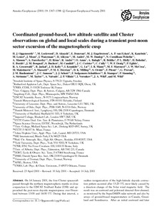 Opgenoorth, H. J., Lockwood, M. ORCID: https://orcid.org/0000-0002-7397-2172, Alcaydé, D., Donovan, E., Engebretson, M. J., van Eyken, A. P., Kauristie, K., Lester, M., Moen, J., Waterman, J., Alleyne, H., André, M., Dunlop, M. W., Cornilleau-Wehrlin, N., Masson, A., Fazerkerley, A., Rème, H., André, R., Amm, O., Balogh, A., Behlke, R., Blelly, P. L., Boholm, H., Borälv, E., Bosqued, J. M., Buchert, S., Candidi, M., Cerisier, J. C., Cully, C., Denig, W. F., Eglitis, P., Greenwald, R. A., Jackal, B., Kelly, J. D., Krauklis, I., Lu, G., Mann, I. R., Marcucci, M. F., McCrea, I. W., Maksimovic, M., Massetti, S., Décréau, P. M. E., Milling, D. K., Orsini, S., Pitout, F., Provan, G., Ruohoniemi, J. M., Samson, J. C., Schott, J. J., Sedgemore-Schulthess, F., Stamper, R., Stauning, P., Strømme, A., Taylor, M., Vaivads, A., Villain, J. P., Voronkov, I., Wild, J. A. and Wild, M. (2001) Coordinated ground-based, low altitude satellite and Cluster observations on global and local scales during a transient post-noon sector excursion of the magnetospheric cusp. Annales Geophysicae, 19 (10/12). pp. 1367-1398. ISSN 0992-7689 doi: 10.5194/angeo-19-1367-2001