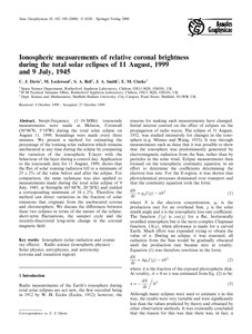 Ionospheric measurements of relative coronal brightness during the total solar eclipses of 11 August, 1999 and 9 July, 1945.
