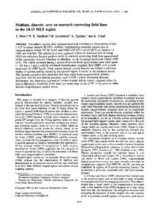 Ionospheric plasma flow measurements and simultaneous observations of thin (∼0.2° invariant latitude (ILAT)), multiple, longitudinally extended auroral arcs of transient nature within 74°-76° ILAT and 1030-1130 UT (∼14-15 MLT) on January 12, 1989, are reported. The auroral structures appeared within the luminous belt of strong 630.0-nm emissions located predominantly on sunward convecting field lines equatorward of the convection reversal boundary as identified by the European Incoherent Scatter UHF radar. The events occurred during a period of several hours quasi-steady solar wind speed (∼ 700 km s−1) and a radially orientated interplanetary magnetic field (IMF) with a weak northward tilt (IMF Bz>0). These typical dayside auroral features are related to previous studies of auroral activity related to the upward region 1 current in the postnoon sector. The discrete auroral events presented here may result from magnetosheath plasma injections into the low-latitude boundary layer (LLBL) and an associated dynamo mechanism. An alternative explanation invokes kinetic Alfvén waves, triggered either by Kelvin-Helmholtz instability at the inner (or outer) edge of the LLBL or by pressure pulse induced magnetopause surface waves.