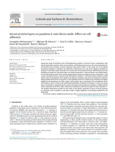 Serum protein layers on parylene-C and silicon oxide: effect on cell adhesion.