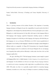 | Publisher Statement | This chapter has been accepted for publication and will appear in a revised form, subsequent to appropriate editorial input by Cambridge University Press, in Language dominance in bilinguals: issues of measurement and operationalization published by Cambridge University Press. |