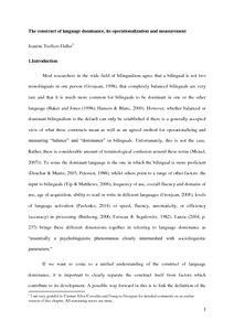Treffers-Daller, J. ORCID: https://orcid.org/0000-0002-6575-6736 (2015) The construct of language dominance, its operationalization and measurement. In: Silva-Corvalan, C. and Treffers-Daller, J. ORCID: https://orcid.org/0000-0002-6575-6736 (eds.) Language Dominance in Bilinguals: Issues of Measurement and Operationalization. Cambridge University Press, Cambridge, pp. 235-265. ISBN 9781107044494
