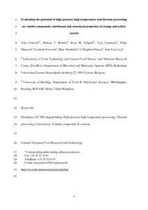 Evaluating the potential of high pressure high temperature and thermal processing on volatile compounds, nutritional and structural properties of orange and yellow carrots.