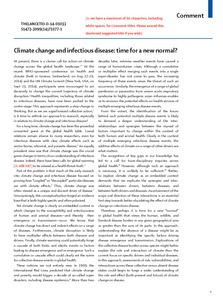 At present, there is a clarion call for action on climate change across the global health landscape. At the recent WHO-sponsored conference on health and climate (held in Geneva, Switzerland, on Aug 27–29, 2014) and the UN Climate Summit (New York, USA, on Sept 23, 2014), participants were encouraged to act decisively to change the current trajectory of climate disruption. Health inequalities, including those related to infectious diseases, have now been pushed to centre stage. This approach represents a step-change in thinking. But as we are urged toward collective action, is it time to rethink our approach to research, especially in relation to climate change and infectious disease?