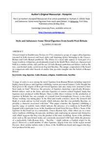 Durham, E. (2014) Style and substance: some metal figurines from south-west Britain. Britannia, 45. pp. 195-221. ISSN 1753-5352 doi: 10.1017/S0068113X14000270