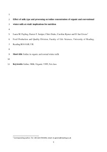 [thumbnail of Effect of milk type and processing on iodine concentration of organic and conventional winter milk at retail implications for nutrition. Centaur.pdf]