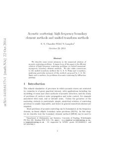 We describe some recent advances in the numerical solution of acoustic scattering problems. A major focus of the paper is the efficient solution of high frequency scattering problems via hybrid numerical-asymptotic boundary element methods. We also make connections to the unified transform method due to A. S. Fokas and co-authors, analysing particular instances of this method, proposed by J. A. De-Santo and co-authors, for problems of acoustic scattering by diffraction gratings.
