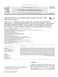 Kovas, Y., Garon-Carrier, G., Boivin, M., Petrill, S., A., Plomin, R., Malykh, S., B., Spiath, F., Murayama, K., Ando, J., Bogdanova, O., Brendgen, M., Dionne, G., Forget-Dubois, N., Galajinsky, E. V., Gottschling, J., Guay, F., Lemelin, J.-P., Logan, J., A., Yamagata, S., Shikishima, C., Spinath, B., Thompson, L., A., Tikhomirova, T., N., Tosto, M., G., Tremblay, R. and Vitaro, F. (2015) Why children differ in motivation to learn: insights from 13,000 twins from 6 countries. Personality and Individual Differences, 80. pp. 51-63. ISSN 0191-8869 doi: 10.1016/j.paid.2015.02.006