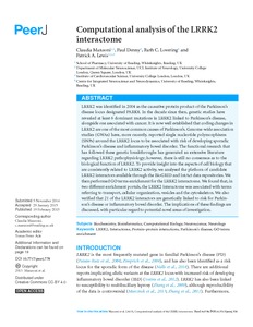 Manzoni, C., Denny, P., Lovering, R. C. and Lewis, P. A. (2015) Computational analysis of the LRRK2 interactome. PeerJ, 3. 778. ISSN 2167-8359 doi: 10.7717/peerj.778
