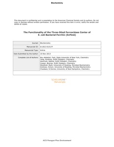 Bou-Abdallah, F., Yang, H., Awomolo, A., Cooper, B., Woodhall, M.R., Andrews, S.C. ORCID: https://orcid.org/0000-0003-4295-2686 and Chasteen, N.D. (2014) The Functionality of the three-sited Ferroxidase center of E. coli Bacterial Ferritin (EcFtnA). Biochemistry, 53 (3). pp. 483-495. ISSN 0006-2960 doi: 10.1021/bi401517f
