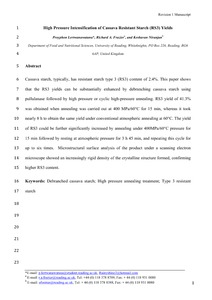 High pressure intensification of cassava resistant starch (RS3) yields.