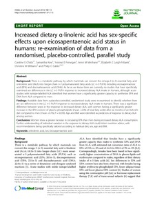 Increased dietary α-linolenic acid has sex-specific effects upon eicosapentaenoic acid status in humans: re-examination of data from a randomised, placebo-controlled, parallel study