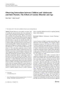 Observing interactions between children and adolescents and their parents: the effects of anxiety disorder and age.