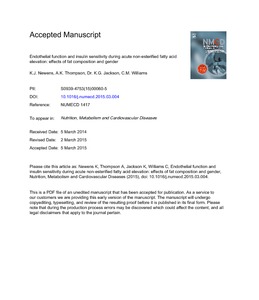 Endothelial function and insulin sensitivity during acute non-esterified fatty acid elevation: effects of fat composition and gender