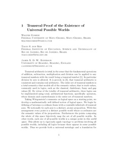 Gomide, W., dos Reis, T. S. and Anderson, J. (2015) Transreal proof of the existence of universal possible worlds. In: Unilog 2015 - 5th World Congress and School on Universal Logic, June 25-30, 2015., Instanbul, Turkey, p. 324. (Handbook of the 5th World Congress and School on Universal Logic Instanbul, Turkey)