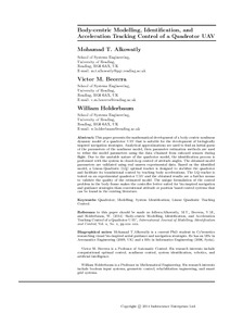 Alkowatly, M. T., Becerra, V. M. and Holderbaum, W. ORCID: https://orcid.org/0000-0002-1677-9624 (2015) Body-centric modelling, identification, and acceleration tracking control of a quadrotor UAV. International Journal of Modelling, Identification and Control, 24 (1). pp. 29-41. ISSN 1746-6172 doi: 10.1504/IJMIC.2015.071697