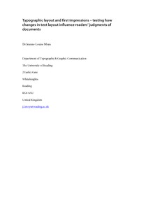 Moys, J.-L. (2014) Typographic layout and first impressions: testing how changes in text layout influence reader's judgments of documents. Visible Language, 48 (1). 881. ISSN 0022-2224