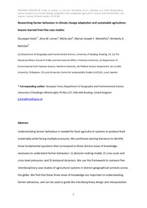 Feola, G., Lerner, A. M., Jain, M., Montefrio, M. J. F. and Nicholas, K. A. (2015) Researching farmer behaviour in climate change adaptation and sustainable agriculture: lessons learned from five case studies. Journal of Rural Studies, 39. pp. 74-84. ISSN 0743-0167 doi: 10.1016/j.jrurstud.2015.03.009