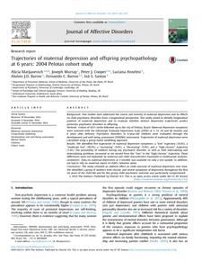 Matijasevich, A., Murray, J., Cooper, P. J., Anselmi, L., Barros, A. J. D., Barros, F. C. and Santos, I. S. (2015) Trajectories of maternal depression and offspring psychopathology at 6 years: 2004 Pelotas cohort study. Journal of Affective Disorders, 174. pp. 424-431. ISSN 0165-0327 doi: 10.1016/j.jad.2014.12.012