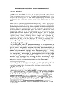 MacMillan, C. (2015) Judah Benjamin: marginalized outsider or admitted insider? Journal of Law and Society, 42 (1). pp. 150-172. ISSN 0263-323X doi: 10.1111/j.1467-6478.2015.00702.x