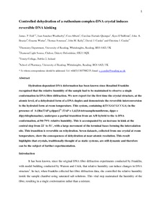 Controlled dehydration of a ruthenium complex-DNA crystal induces reversible DNA kinking.
