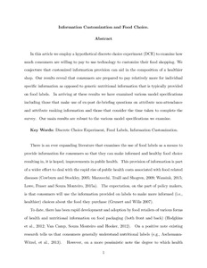 Uncontrolled Keywords Discrete Choice Experiment, Food Labels, Information Customization