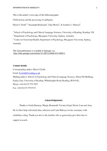 Dodd, H. F. ORCID: https://orcid.org/0000-0003-1446-5338, Stuijfzand, S., Morris, T. and Hudson, J. L. (2015) Child anxiety and the processing and ambiguity. Cognitive Therapy and Research, 39 (5). pp. 669-677. ISSN 0147-5916 doi: 10.1007/s10608-015-9689-1
