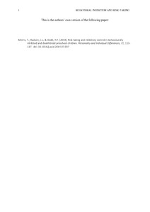 Morris, T. M., Hudson, J. L. and Dodd, H. F. ORCID: https://orcid.org/0000-0003-1446-5338 (2014) Risk-taking and inhibitory control in behaviourally inhibited and disinhibited preschool children. Personality and Individual Differences, 71. pp. 113-117. ISSN 0191-8869 doi: 10.1016/j.paid.2014.07.037
