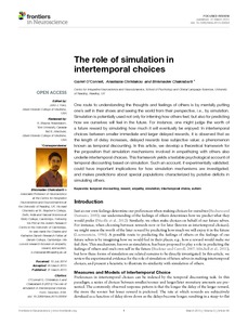 O'Connell, G., Christakou, A. ORCID: https://orcid.org/0000-0002-4267-3436 and Chakrabarti, B. ORCID: https://orcid.org/0000-0002-6649-7895 (2015) The role of simulation in intertemporal choices. Frontiers in Neuroscience, 9. 94. ISSN 1662-453X doi: 10.3389/fnins.2015.00094
