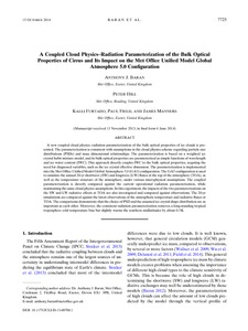 Baran, A. J., Hill, P. ORCID: https://orcid.org/0000-0002-9745-2120, Furtado, K., Field, P. and Manners, J. (2014) A coupled cloud physics–radiation parameterization of the bulk optical properties of cirrus and its impact on the Met Office unified model global atmosphere 5.0 configuration. Journal of Climate, 27 (20). pp. 7725-7752. ISSN 1520-0442 doi: 10.1175/JCLI-D-13-00700.1