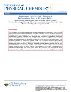 Madden, D.C., Temprano, I., Sacchi, M. and Jenkins, S.J. (2015) Spontaneous local symmetry breaking: a conformational study of glycine on Cu{311}. Journal of Physical Chemistry C, 119 (23). pp. 13041-13049. ISSN 1932-7447 doi: 10.1021/acs.jpcc.5b02349