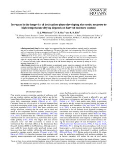 Increases in the longevity of desiccation-phase developing rice seeds: response to high temperature drying depends on harvest moisture content