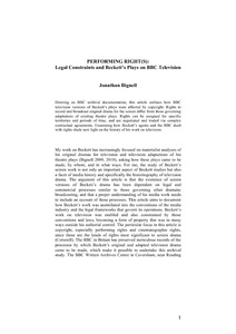Performing right: legal constraints and Beckett’s plays on BBC television.