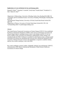 The United Nations Framework Convention on Climate Change (UNFCCC) has established the Warsaw International Mechanism (WIM) to deal with loss and damage associated with climate change impacts, including extreme events, in developing countries. It is not yet known whether events will need to be attributed to anthropogenic climate change to be considered under the WIM. Attribution is possible for some extreme events- a climate model assessment can estimate how greenhouse gas emissions have affected the likelihood of their occurrence. Dialogue between scientists and stakeholders is required to establish whether, and how, this science could play a role in the WIM.