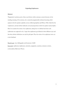 ‘Pragmaticist’ positions posit a three-way division within utterance content between: (i) the standing meaning of the sentence, (ii) a somewhat pragmatically enhanced meaning which captures what the speaker explicitly conveys (following Sperber and Wilson 1986, I label this the ‘explicature’), and (iii) further indirectly conveyed propositions which the speaker merely implies. Here I re-examine the notion of an explicature, asking how it is defined and what work explicatures are supposed to do. I argue that explicatures get defined in three different ways and that these distinct definitions can and do pull apart. Thus the notion of an explicature turns out to be ill-defined.