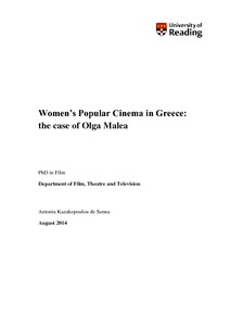 Kazakopoulou de Senna, A. (2015) Women’s Popular Cinema in Greece: the case of Olga Malea. PhD thesis, University of Reading.