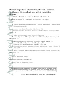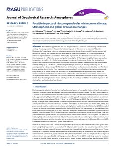 Possible impacts of a future grand solar minimum on climate: stratospheric and global circulation changes.