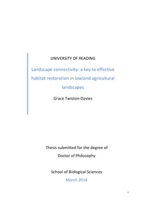 Twiston-Davies, G. (2014) Landscape connectivity: a key to effective habitat restoration in lowland agricultural landscapes. PhD thesis, University of Reading.