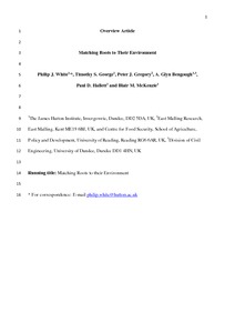 Background Plants form the base of the terrestrial food chain and provide medicines, fuel, fibre and industrial materials to humans. Vascular land plants rely on their roots to acquire the water and mineral elements necessary for their survival in nature or their yield and nutritional quality in agriculture. Major biogeochemical fluxes of all elements occur through plant roots, and the roots of agricultural crops have a significant role to play in soil sustainability, carbon sequestration, reducing emissions of greenhouse gasses, and in preventing the eutrophication of water bodies associated with the application of mineral fertilisers. ● Scope This article provides the context for a Special Issue of Annals of Botany on ‘Matching Roots to Their Environment’. It first examines how land plants and their roots evolved, describes how the ecology of roots and their rhizospheres contributes to the acquisition of soil resources, and discusses the influence of plant roots on biogeochemical cycles. It then describes the role of roots in overcoming the constraints to crop production imposed by hostile or infertile soils, illustrates root phenotypes that improve the acquisition of mineral elements and water, and discusses high-throughput methods to screen for these traits in the laboratory, glasshouse and field. Finally, it considers whether knowledge of adaptations improving the acquisition of resources in natural environments can be used to develop root systems for sustainable agriculture in the future.